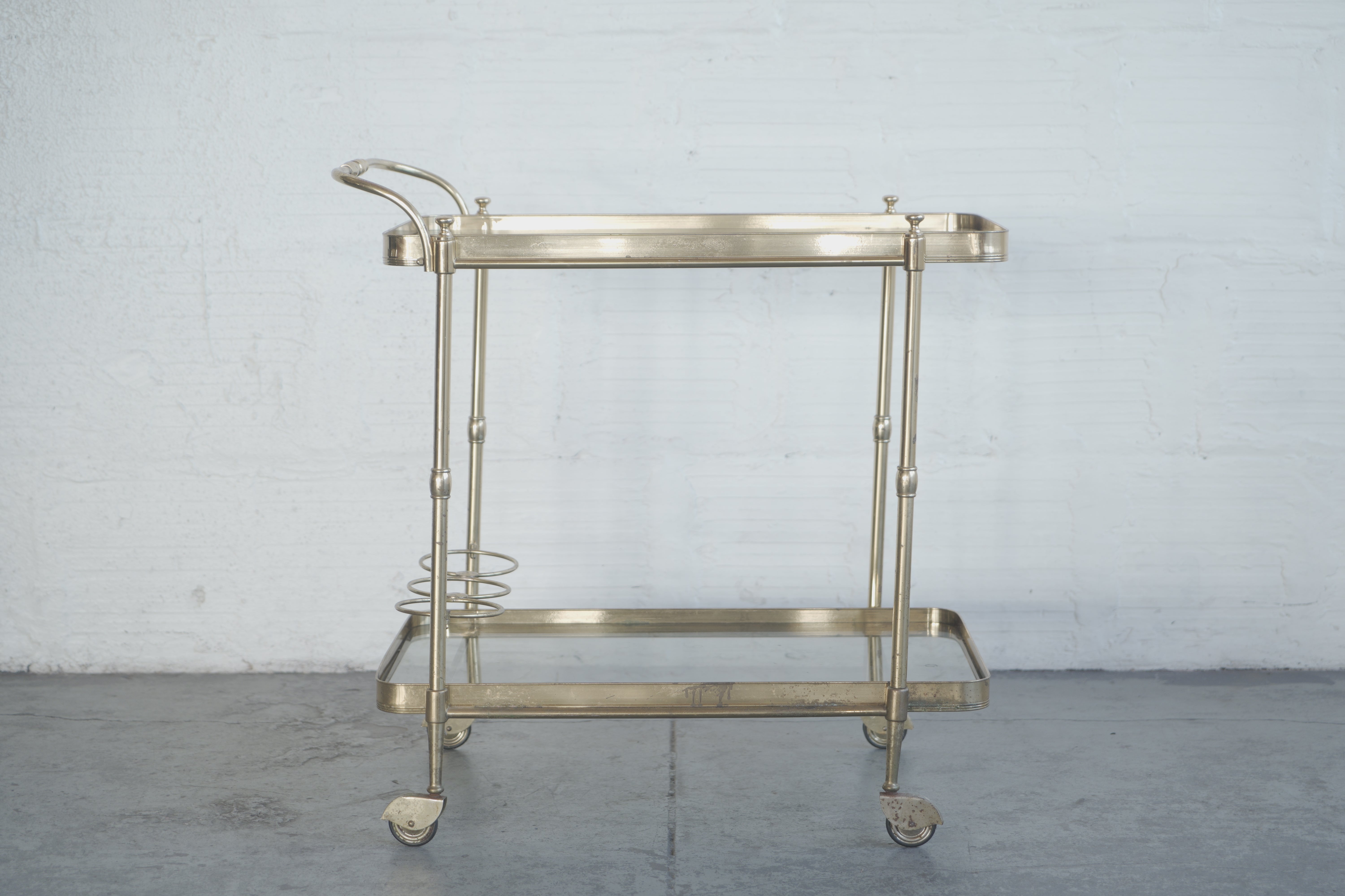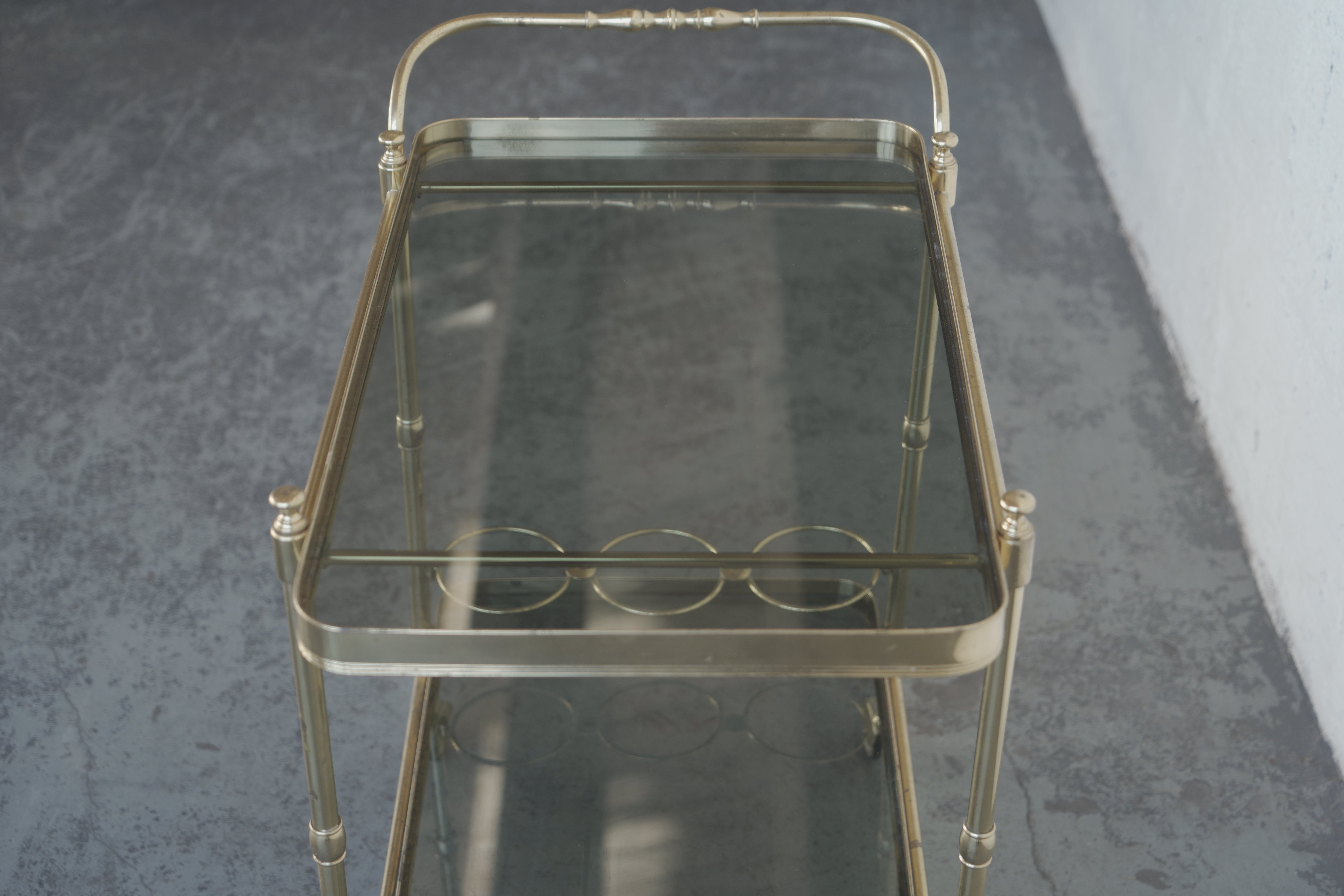 1970s Italian Brass and Smoked Glass Bar Cart